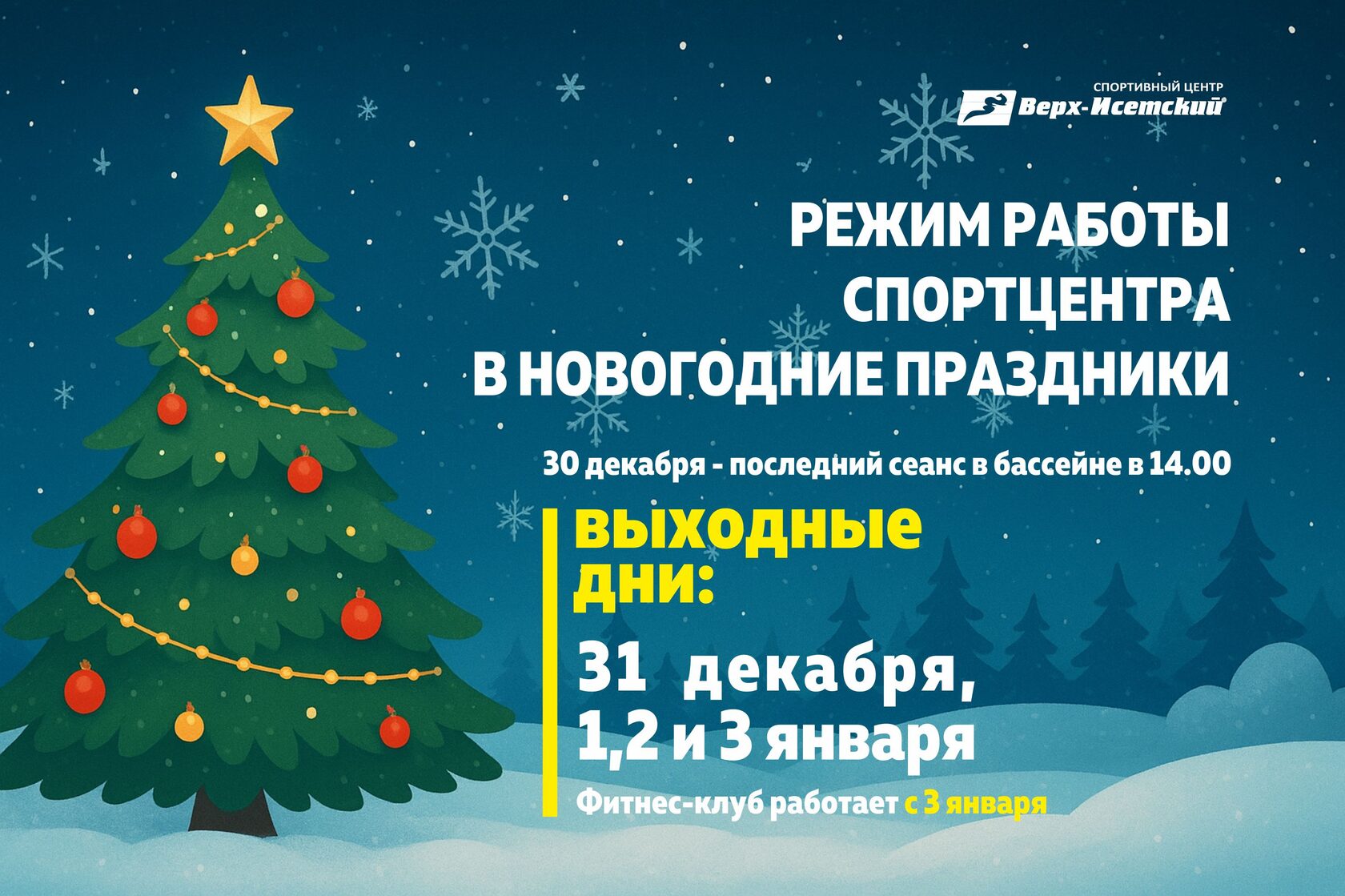 🎄 Режим работы спортцентра в новогодние праздники